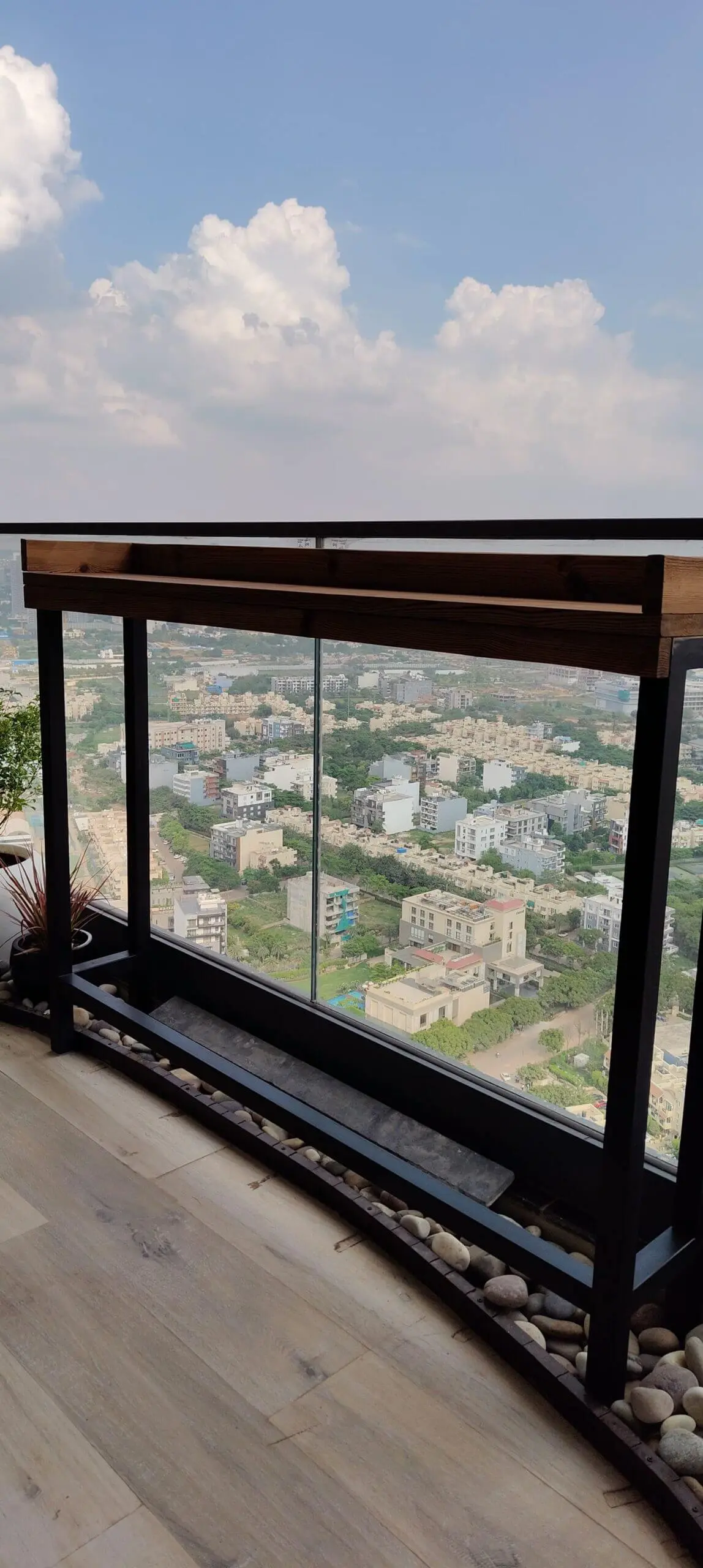 This 195 sq ft balcony at M3M Skycity was designed to be simple, versatile, and easy to use every day. A railing table creates a natural spot for coffee or work, while corner décor and layered planters add warmth without taking up floor space. With a compact zen area, a portable water fountain, and comfortable outdoor seating, the balcony now feels balanced — part relaxation nook, part functional extension of the home.