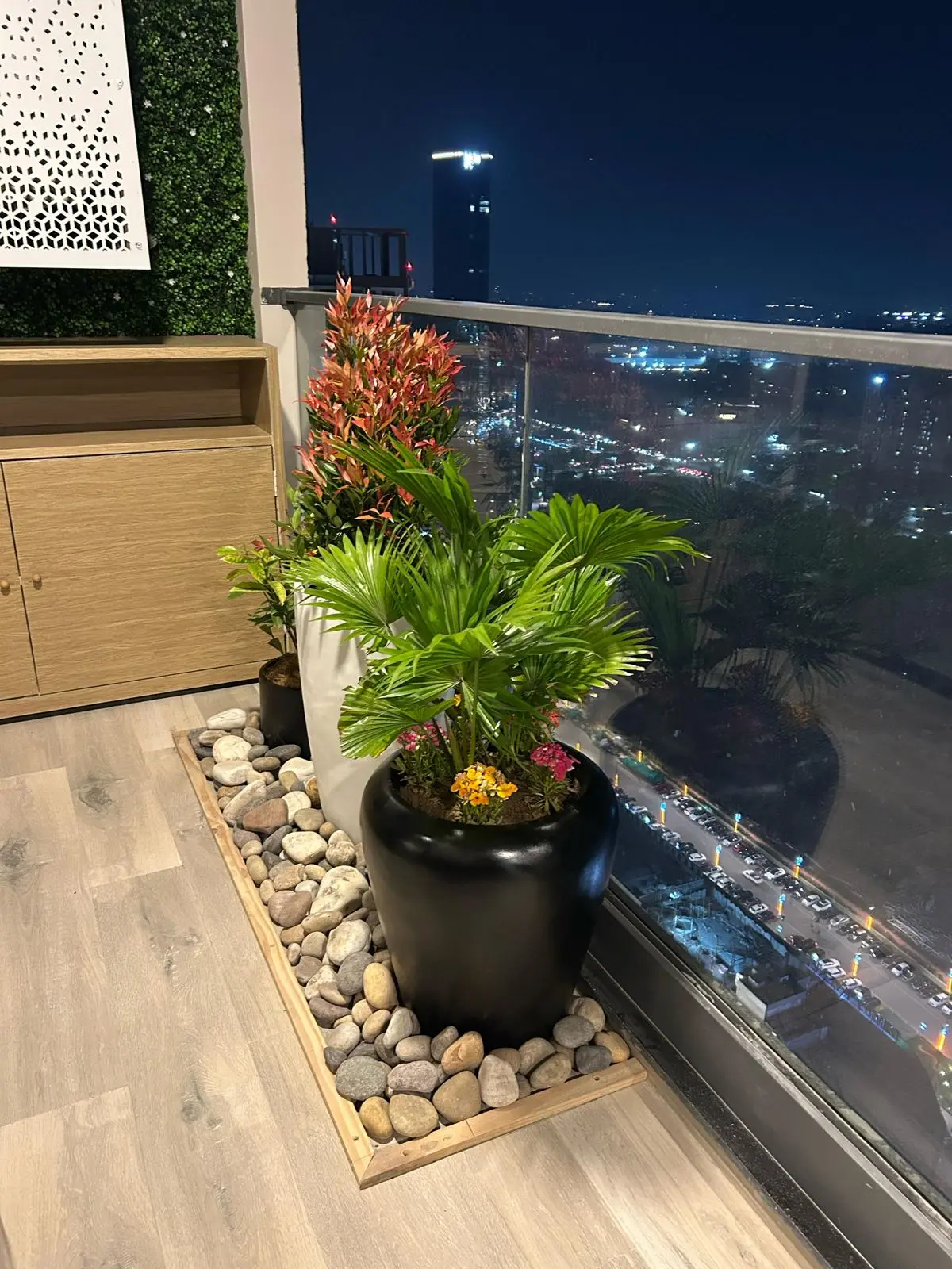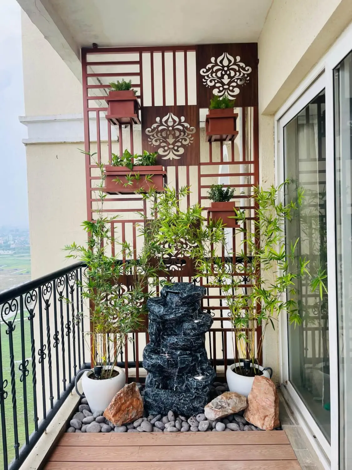 Aesthetic Balcony Makeover with Wooden Decking & Wall Planters