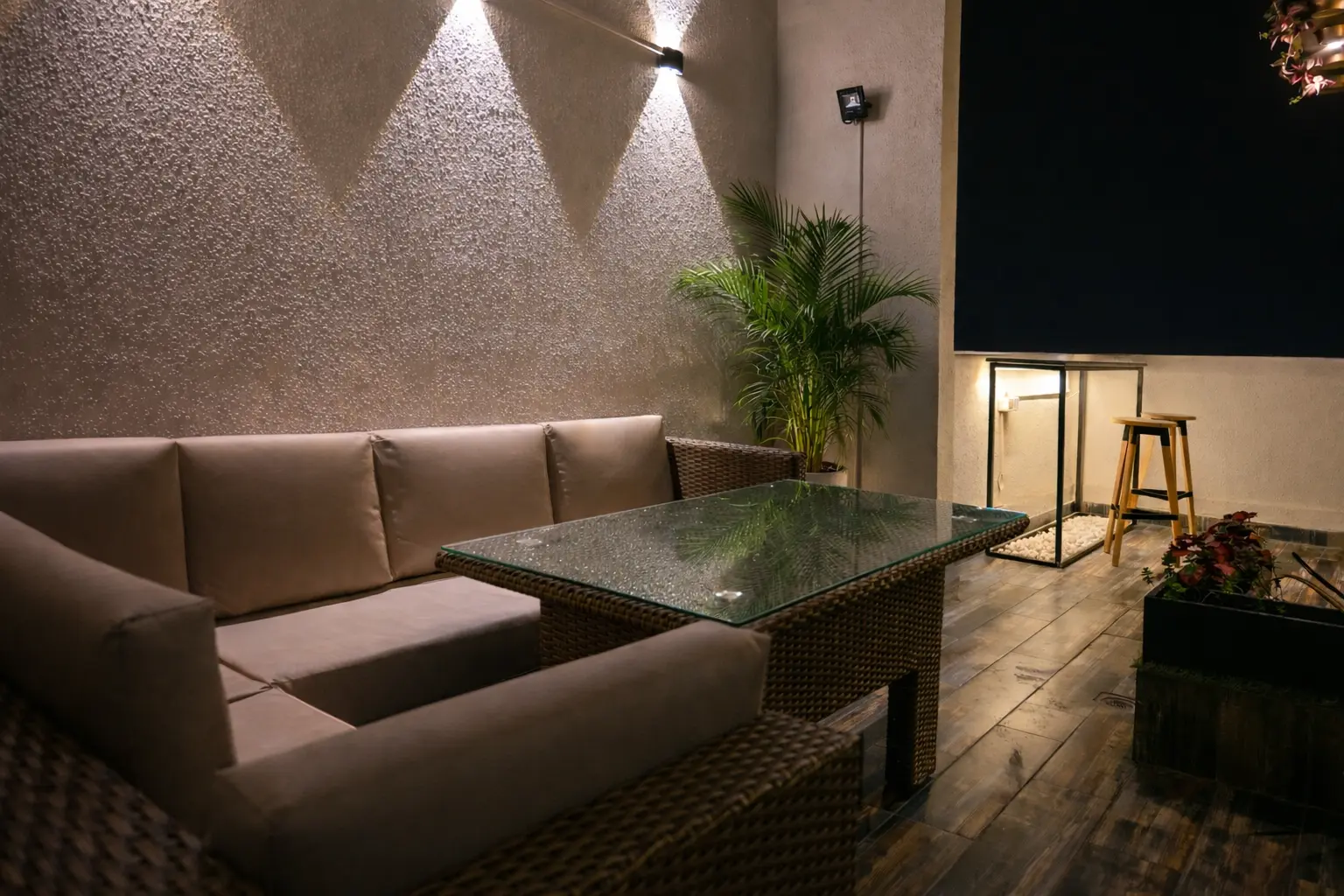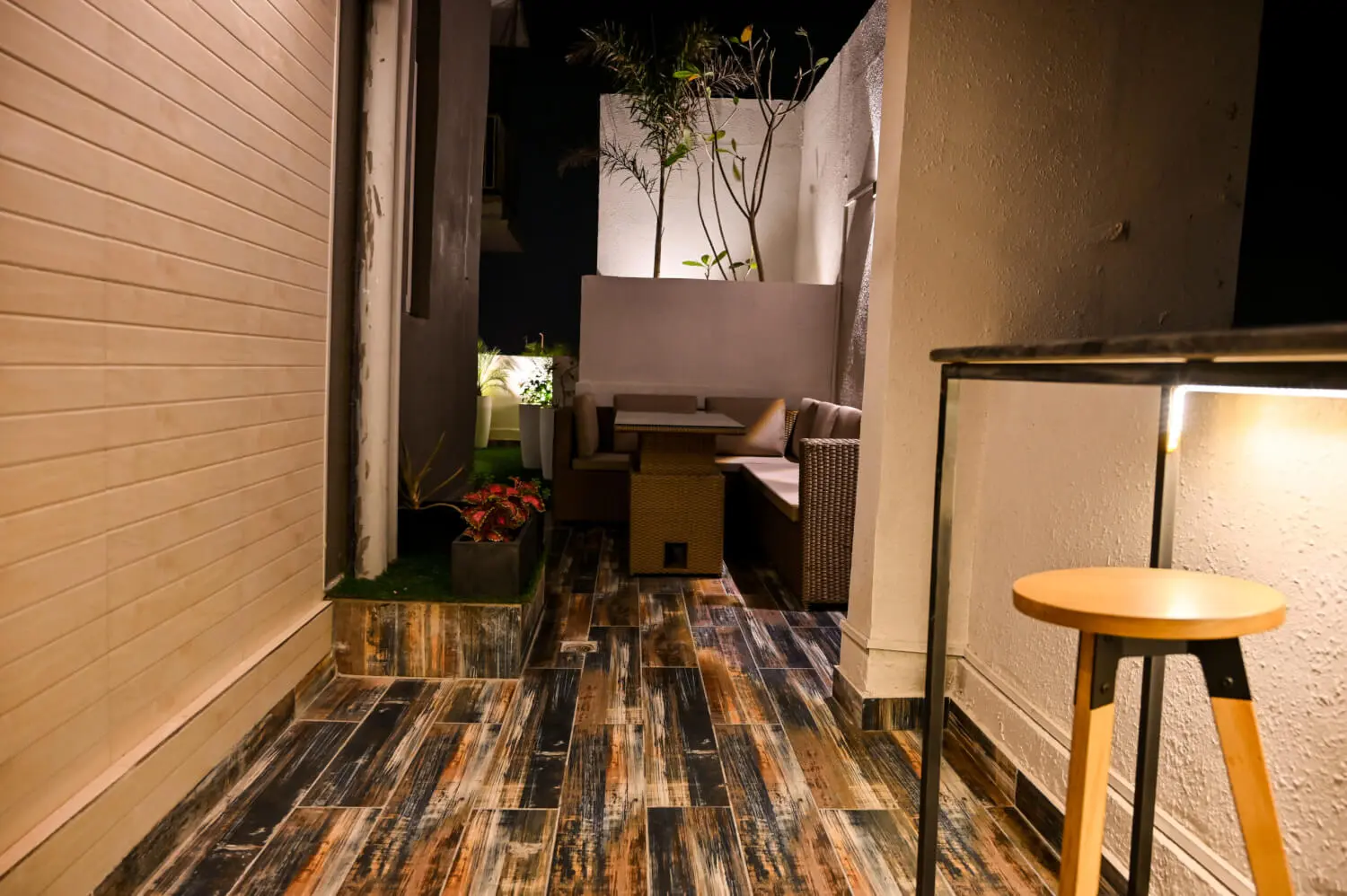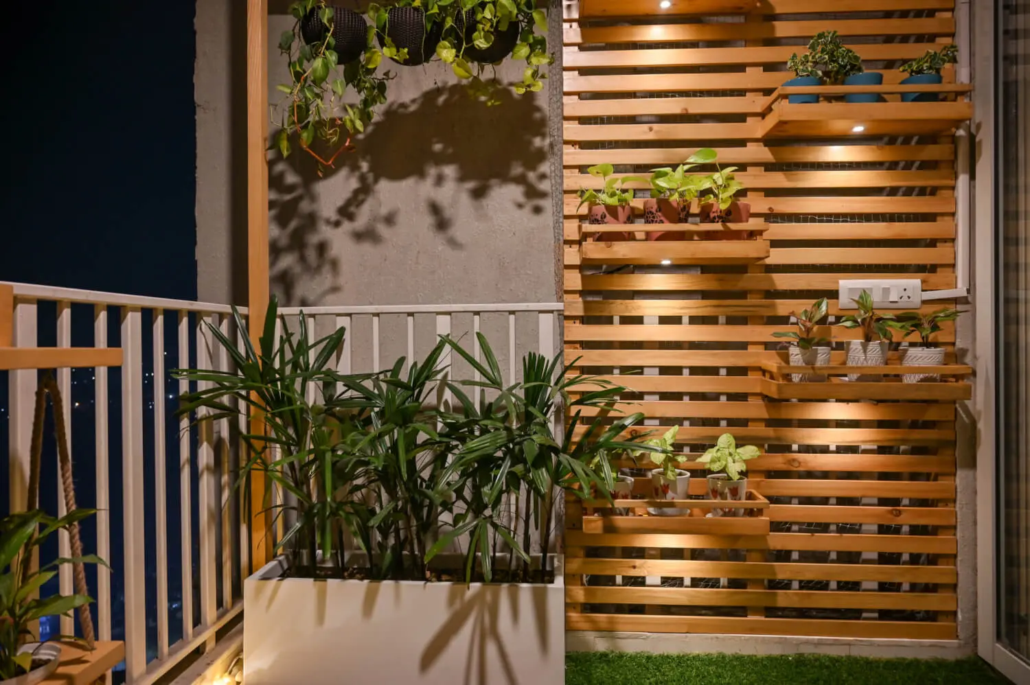 This 70 sq ft balcony at Ireo Victory Valley proves that small spaces can feel complete and inviting. A railing table creates a functional edge for coffee or quick work sessions, while the swing becomes the heart of the space — perfect for slow evenings. A wooden screen adds warmth and privacy, and the flooring ties everything together into a clean, modern setting. Designed with intention, this balcony turns compact square footage into a comfortable everyday retreat.