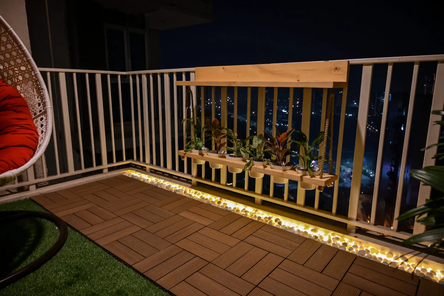 Compact Balcony Makeover with Swing & Railing Table